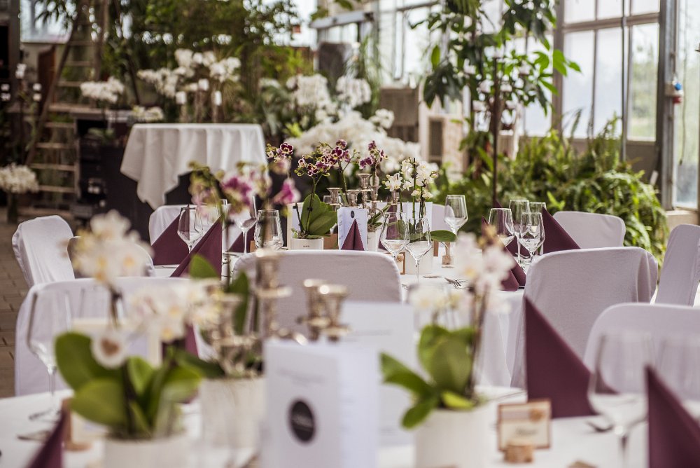 Feiere dein unvergessliches Fest im Grünen – mit Gartenanlage, Orchideenhaus, Palmen und Studengarten.